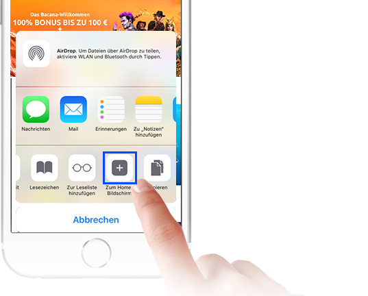 Tippen Sie auf 'Zum Startbildschirm hinzufügen'